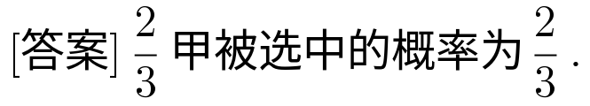 从甲、乙、丙3名学生中随机选2人,则甲被选中的概率为_________