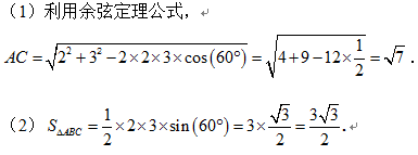 在△ABC中,AB=2,BC=3,B=60°.求AC及△ABC的面积.