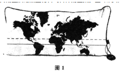 日常生活用品上有各式各样的图案。图1所示的枕头上印有世界地图图案。据此完成试题。