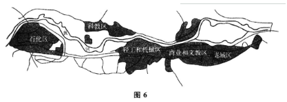 图6示意我国西北地区某城市土地利用分区。读图6,完成35-36题。