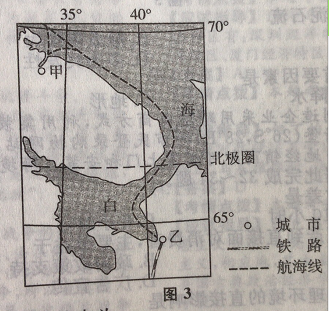 国重要的军事物黄补给线。图3示意该补给线的部分航线。据此完成24~26题