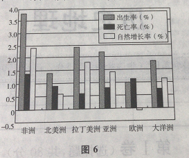 图6示意2010年各大洲人口自然增长状。读图6,完成33~35题