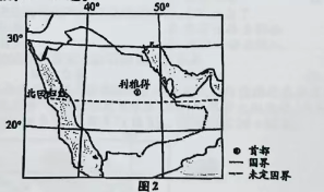 20世纪70年代,沙特阿拉伯(图2)政府向农民和农业公司无偿提供荒地,鼓励他们在内陆地区开垦新耕地,并提供巨额补贴,免费提供化肥和农业专家指导。到了90年代初,沙特阿拉伯成为世界十大小麦出口国之一。近年来,沙特阿拉伯限制开荒,大幅度削减农业补贴,加快发展生态农业、海外农业。据此完成16-18题。