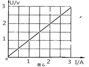 图甲中直线为由实验测得某电源的路端电压u和干路电流爱的U-I图像,图乙中,直线为实验测得的某电阻R的电压u和电流I的U-I图像,电源的电动势为_______V,电阻r的阻值为_______Ώ(保留两位有效数字)