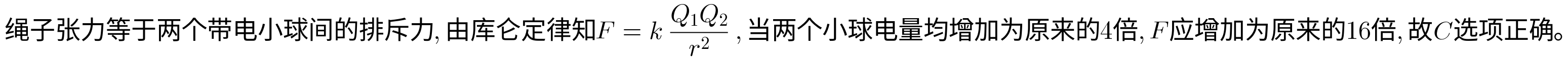 一不可伸长的绝缘细绳的两端,各系一电量相等的带正电的小球,小球半径和重力可忽略。若两小球所带电量均增加为原来的4倍,则细绳中的张力为原来的