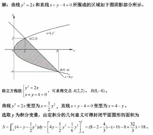 求由抛物线y²=2x和直线x+y-4=0所围成的图形的面积
