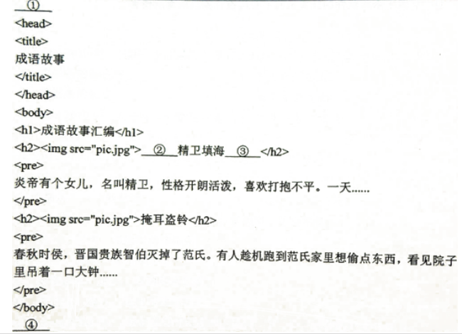 如果单击文字“精卫填海”则跳转到同目录下的另一个网页文件“jwth.html”,需要在以上源码的②和③处增加什么标记?