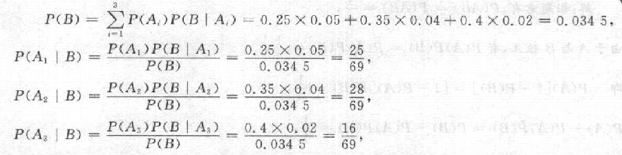 某工厂中,三台机器分别生产某种产品总数的25%,35%,40%,它们生产的产品中分别有5%,4%,2%的次品,将这些产品混在一起,现随机地取一产品,问它是次品的概率是多少?又问这一次品是由三台机器中的哪台机器生产的概率最大?