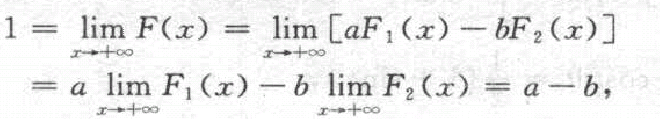 设F1(x),F2(x)分别为随机变量X1和X2的分布函数,且F(x)=aF1(x)一bF2(x)也是某一随机变量的分布函数,证明a-b=1.