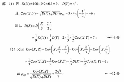 已知随机变量X服从二项分布 B(100,0.9),Y一N(0,42),且X与Y的相关系数,设.求(1)D(Z); (2)